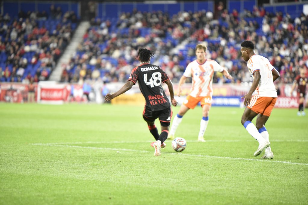A los pocos minutos de comenzar el partido Red Bulls propuso un partido abierto con llegadas al área rival, con jugadas en conjunto apretando la salida del los visitantes y con mucha intensidad al ataque. En una jugada que se gesta en la mitad de la cancha y llegando al área por banda derecha con asistencia de Cade Cowell y asegurando al fondo de la red Julian Hall (16).